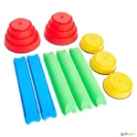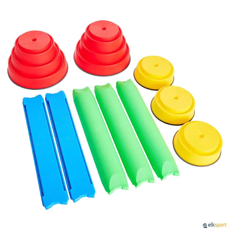 Este conjunto inclui elementos para construir um verdadeiro percurso de equilíbrio. Os seus componentes podem ser combinados de múltiplas formas usando a imaginação, e o nível de dificuldade pode ser ajustado em função da idade, do nível dos utilizadores e da sua altura, de 10 a 24 cm.