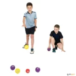 Conjunto de coletes alvo, com uma superfície exterior onde aderem as bolas de velcro. Isto possibilita muitas atividades e jogos de precisão, estáticos, ou em movimento, individualmente ou em equipas.