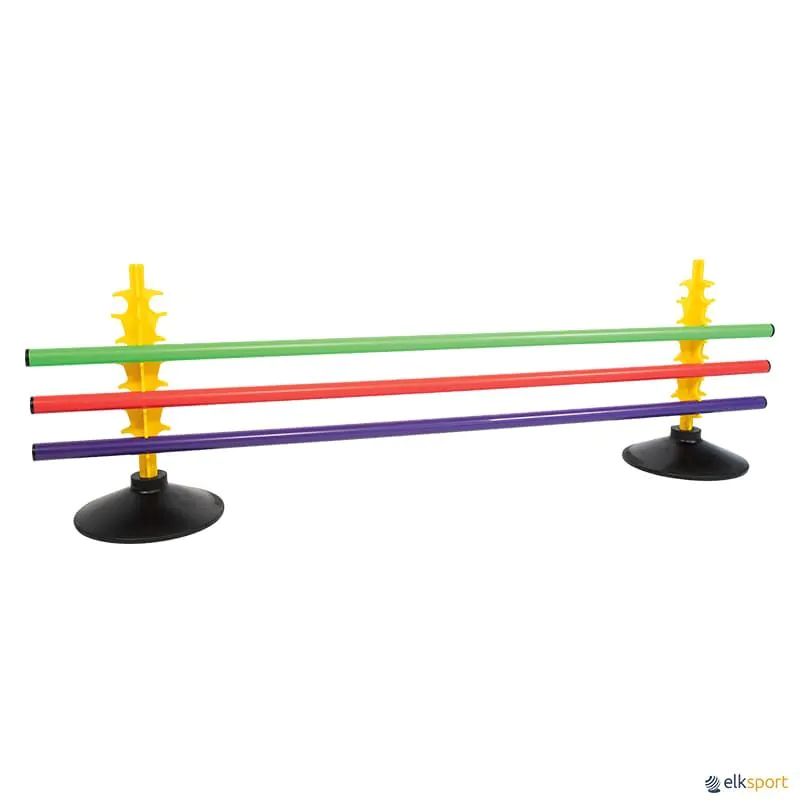 Conjunto de 15 bastões, 10 bases e 10 pinças bastão/bastão. São super resistentes e uma excelente ferramenta de treino