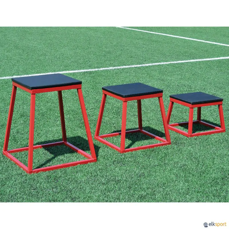 Plataformas para trabalho de pliometria, força e velocidade. Estrutura em aço reforçado, pés em trapézio para melhor estabilidade, topo recoberto de borracha anti derrapante. Muito leve, fácil de mover e armazenar, uma dentro de outra.