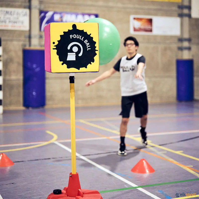 Poull Ball é uma atividade desportiva mista e muito fácil. Permite a integração de todos num jogo dinâmico e espetacular. A particularidade deste jogo, reside no facto de não haver contacto físico (violento) e assentar na estratégia e cooperação. O objetivo do jogo: duas equipas de 5 jogadores, tentam derrubar um cubo multicolor, com uma bola gigante de 55 cm de diâmetro, depois de realizarem no mínimo 3 passes entre os seus jogadores. Não se pode entrar na área que rodeia o cubo. Joga-se só com passes, não se pode caminhar com a bola, o que implica uma maior cooperação de todos jogadores da equipa. Muito fácil de aprender. O sistema da Grande Base é perfeito para jogar ao Poull Ball, acrescentando a plataforma no topo. O dado pode ser colocado em qualquer outro suporte desde que seja alto e estável. Incluí guia de atividades.