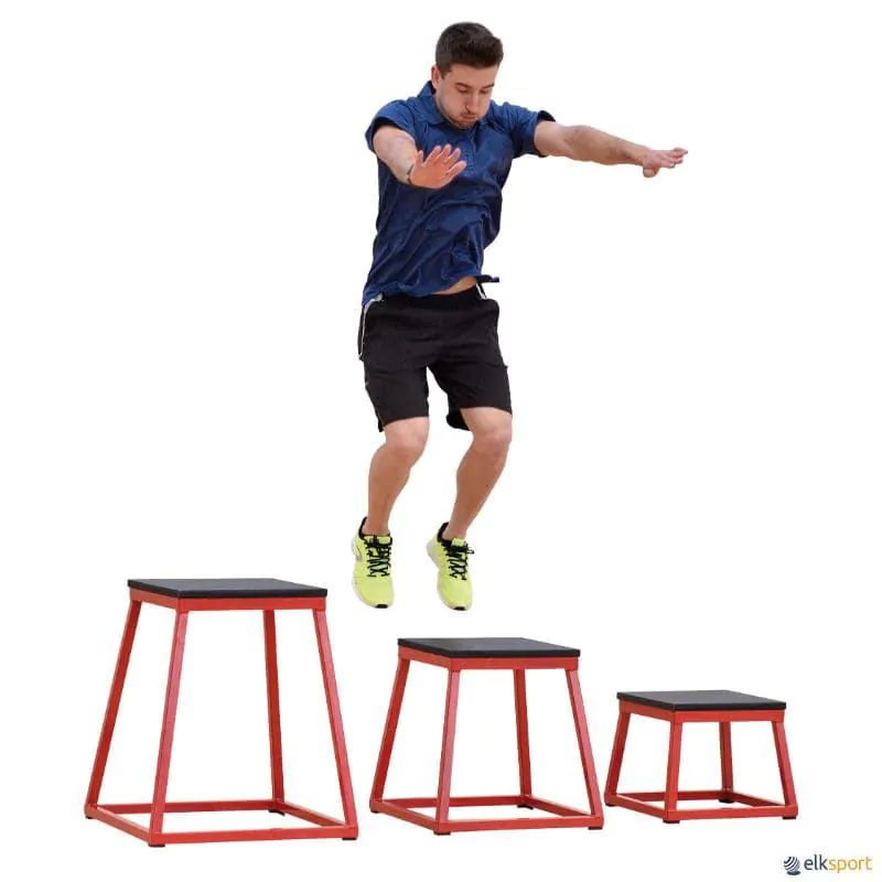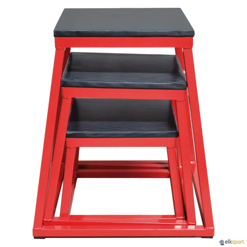 Plataformas para trabalho de pliometria, força e velocidade. Estrutura em aço reforçado, pés em trapézio para melhor estabilidade, topo recoberto de borracha anti derrapante. Muito leve, fácil de mover e armazenar, uma dentro de outra.