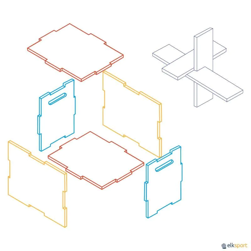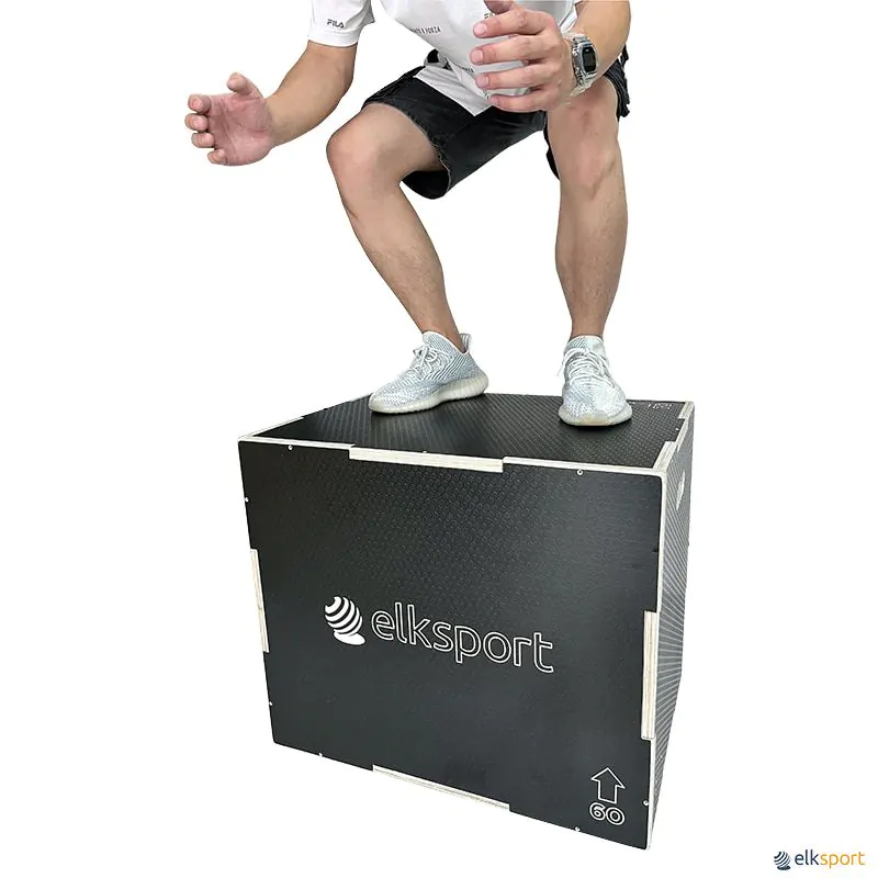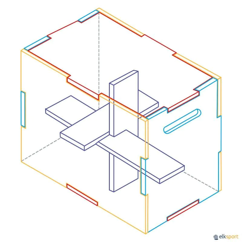 Caixa pliométrica fabricada em madeira natural. A altura depende de que lado pousa a caixa, o que a torna adaptada para qualquer atleta ou nível.