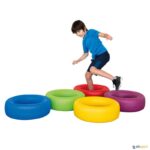 Conjunto de 5 pneus de plástico fabricados de acordo com as normas europeias e adequados para uso infantil, tanto no exterior como no interior. Ideais para promover a motricidade e estimular a imaginação, podem ser utilizados todos juntos em forma de circuito ou separadamente. Fechados na parte interior para evitar lesões ou a acumulação de água. Fabricados em plástico rígido e resistente.