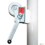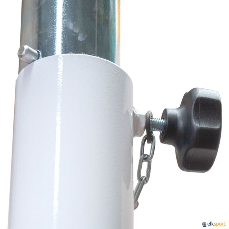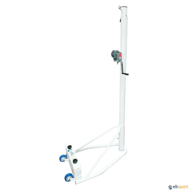 Par postes voleibol móveis e lastrados. Postes em tubo de ferro pintado de secção redonda de 80 mm de Ø. Possibilidade de colocação da rede em 7 alturas (postes fixos) ou 8 alturas (postes móvel) através de um passador. Tensor de manivela e roldana com eixo simples. De acordo normativa UNE-EM 1271.