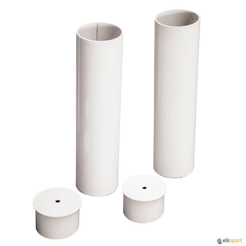 Par de postes de voleibol em tubo de ferro pintado de secção redonda (ø 80 mm). Possibilidade de colocação da rede em 7 alturas. Polia de eixo simples e tensor de manivela. De acordo com a norma UNE-EN 1271. Mangas de fixação e tampas incluídas.