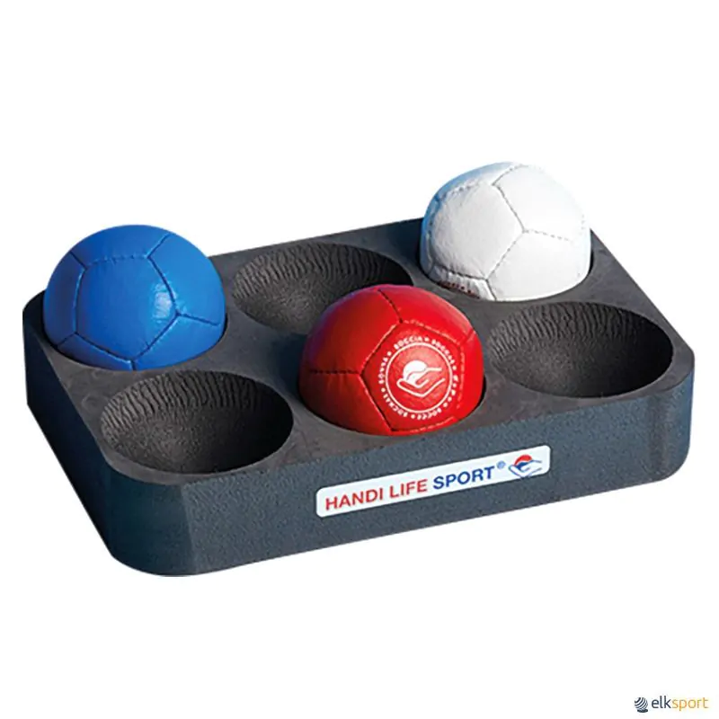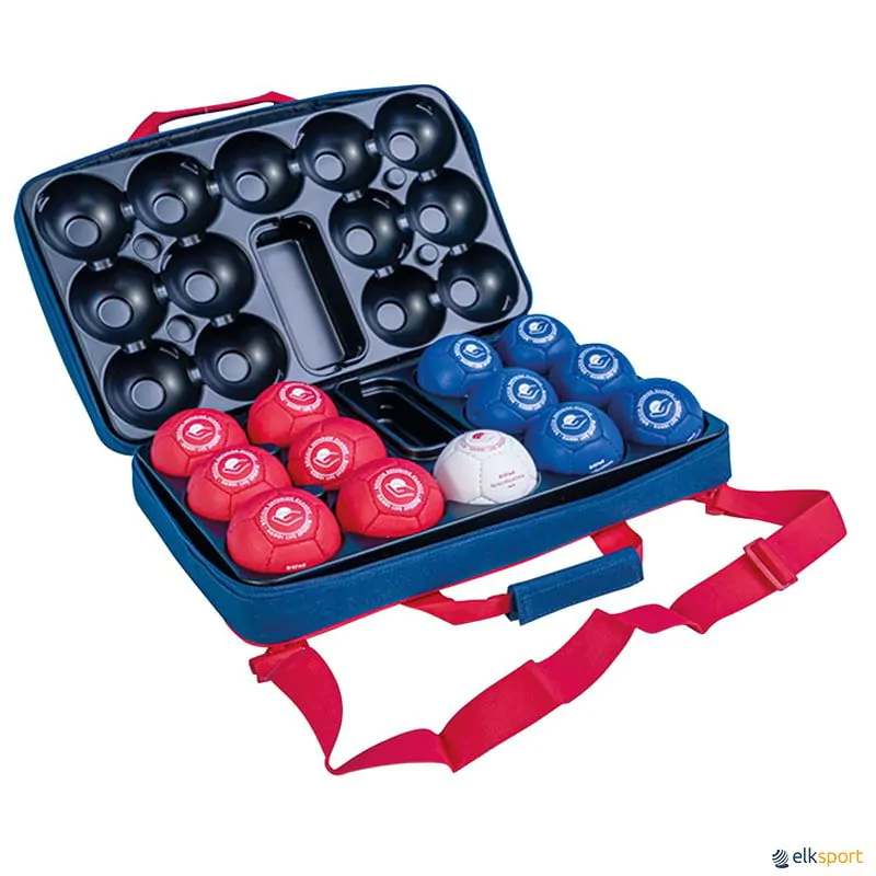 Composto por 13 bolas de PU de alta qualidade, cosidas à mão, inseridas numa mala específica com proteções. Em conformidade com as normas de competição internacionais, com selo estampado BISFed / World Boccia- .