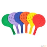 Raquete multiusos de plástico leve para uma utilização muito diversificada. É como uma raquete de ténis de mesa, leve e com uma pega acessível a todos utilizadores, desde os mais pequenos até aos adultos.