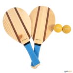 Raquetas de madeira Poplar, o que lhes confere maior resistência em relação às raquetes convencionais. Permite jogar com a clássica bola de borracha ou inclusive com outras de maior dimensão e peso. Não usar com bolas de ténis.