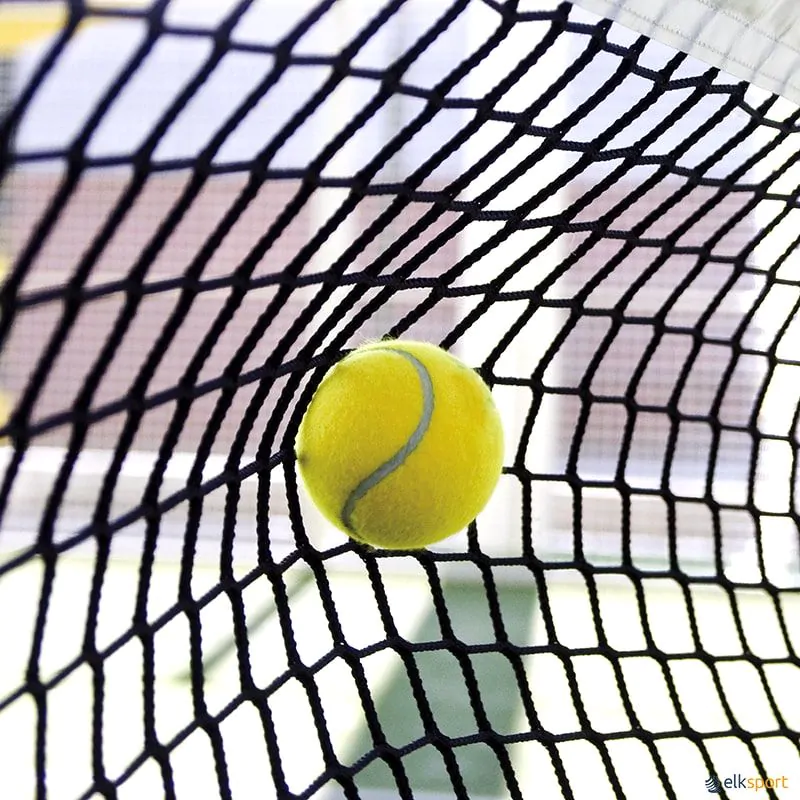 – Rede de Ténis Competição Linea Oro em fio de polipropileno de 4 mm: Cor preta, banda PVC em todo perímetro e cabo de aço galvanizado plastificado.
