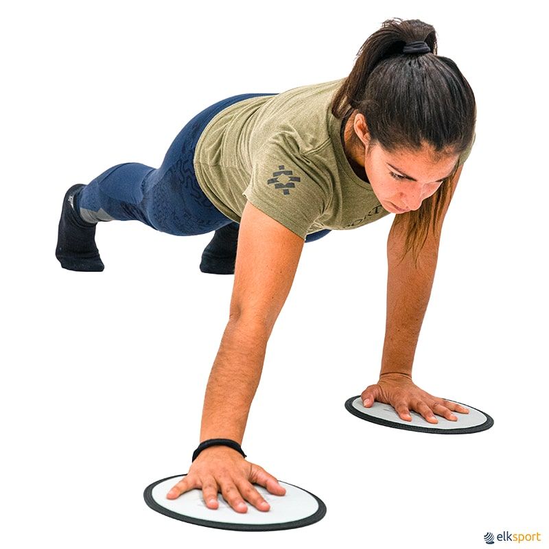 Par de discos para colocar nos pés ou nas mãos, permitindo realizar exercícios de deslizamento controlado e tonificar todos os grupos musculares através de movimentos suaves e elegantes. Podem deslizar sobre pavimentos sintéticos, de madeira, cerâmica, entre outros.