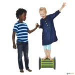 Roller da conceituada marca Gonge: elemento cilíndrico concebido para trabalhar o equilíbrio de crianças e jovens. Pode utilizar-se como elemento de treino de equilíbrio ou como elemento sensorial pelas suas características tácteis. Ideal para estimular as capacidades propriocetivas, assim como todas as capacidades tácteis e no plano vestibular. É segura, não tem rodas, as partes mais salientes são revestidas a borracha para uma melhor aderência ao solo. Existe em duas cores. Para os mais jovens, aconselha-se a de cor verde por ser mais estável devido ao lastro de 2,5 kg de areia para reduzir a velocidade. Depois existe também a laranja mais rápida. Fabricado em polipropileno e borracha.