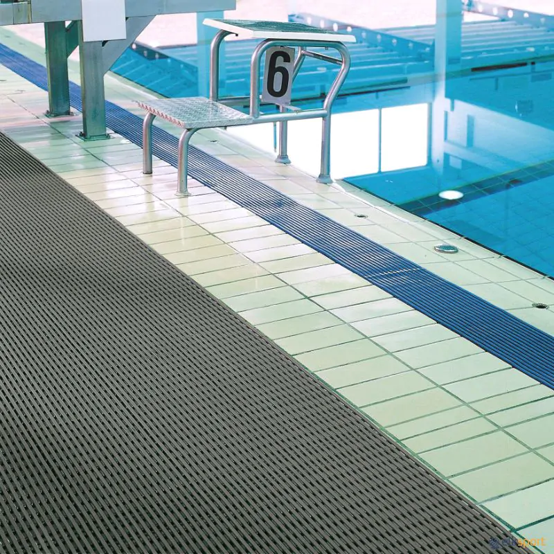 Fabricado em PVC virgem flexível e antiderrapante. Oferece a máxima estabilidade graças ao seu design com maior superfície de contato e peso. Rolo de 10 m de comprimento. Disponível em 2 larguras diferentes e 2 cores (azul ou cinza)