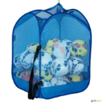 Saco muito resistente para armazenar e transportar mais de 15 bolas. Com alça a tiracolo ajustável. Tela em PVC resistente e base duplamente reforçada. Ilhós metálicos na orla superior.