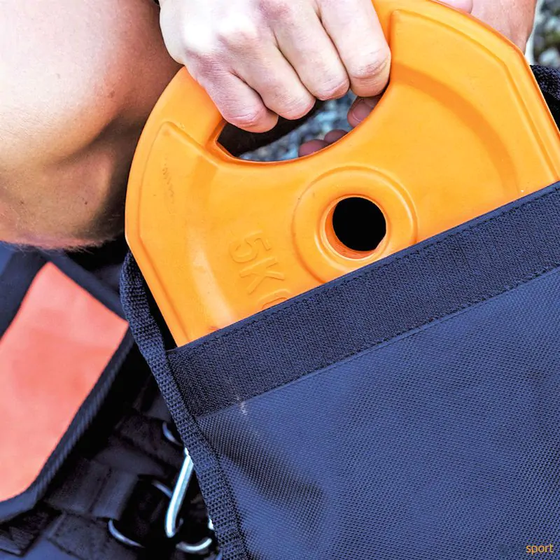 Colete 20 kg: Peso de 1 a 20 kg, adicionando ou retirando lastros de 975 g (incluídos), repartidos em 20 bolsos.