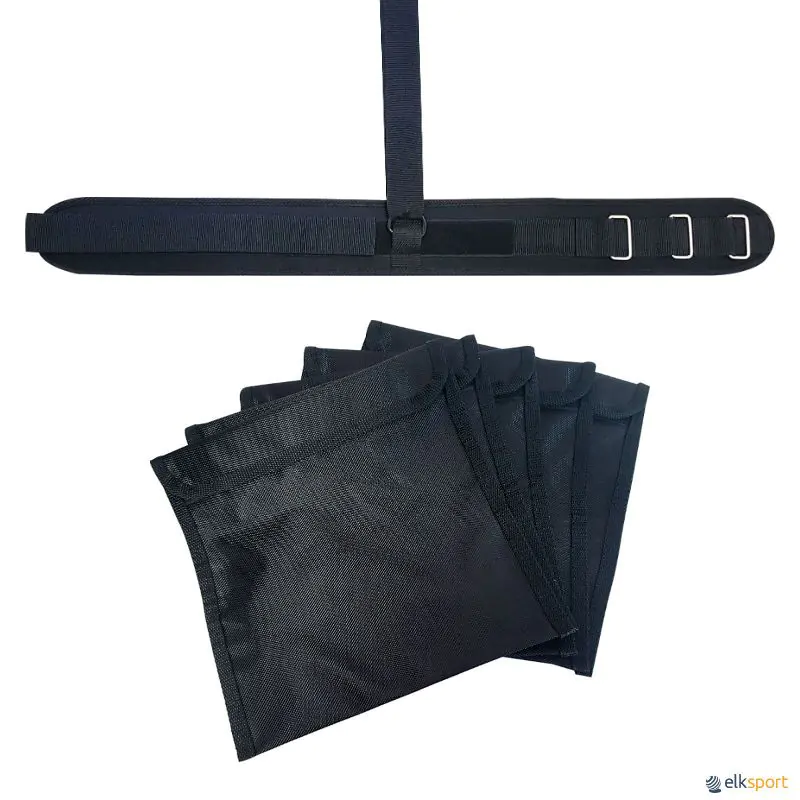 Para treino de força e potência, com comprimento ajustável da correia de arrasto. Pode ser usado em relva natural ou artificial, madeira ou pisos sintéticos de centros desportivos ou ginásios. Se usado em outro tipo de superfícies, o produto pode ser danificado e reduzir sua durabilidade. Inclui 5 sacos reutilizáveis para lastrar de areia.