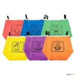 Aos já populares sacos polivalentes, adicionamos fitas em material muito resistente, para aumentar as possibilidades de jogo enquanto você se move pulando com eles. A atividade mais básica é tentar remover as fitas dos sacos dos outros jogadores, tentando conservar as sua fitas, mas existem muitas outras possibilidades.