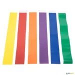 O conjunto é composto por: 6 sacos com 6 fitas em 6 cores (amarelo, azul, laranja, vermelho, verde e violeta).