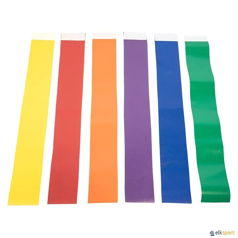 A cintura de placagem 6 cores oferece um grande número de possíveis posições para fixar as fitas, graças ao velcro de 360° que cobre todo o perímetro do cinto, tornando este sistema o mais versátil que se pode encontrar no mercado. Fácil de usar: basta unir as duas extremidades do cinto no ponto desejado, já que toda a sua superfície está revestida com velcro — e está pronto! Isto reduz o tempo de preparação e aumenta o tempo de jogo. Possibilidade de colocação das fitas em 360 graus. Além disso, o velcro ao longo de todo o cinto permite fixar múltiplas fitas em qualquer ponto, eliminando o tempo gasto à procura da posição certa e aumentando o tempo efetivo de prática. O cinto é vendido com 6 fitas de vinil altamente resistentes, em 6 cores diferentes, proporcionando mais variedade para atividades e jogos. As fitas de vinil têm costura reforçada no velcro para garantir maior durabilidade.