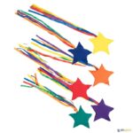 Conjunto de 6 saquinhos em forma de estrela, aos quais foi adicionada uma colorida cauda de fitas, para tornar o lançamento mais visível e facilitar a receção. Fabricados em tecido de algodão.