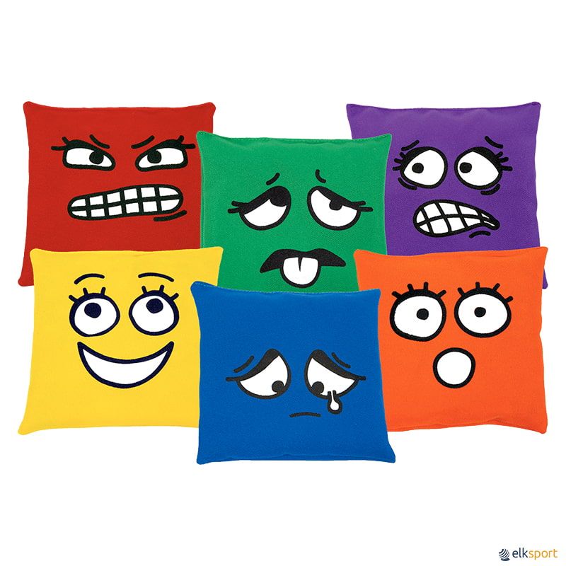 Saquinhos fabricados em algodão suave com uma costura muito resistente. Concebidos como uma ferramenta de apoio tanto para professores de educação física como para professores de sala de aula, com o objetivo de desenvolver a inteligência emocional dos alunos de forma divertida. Isto torna a aquisição de competências emocionais mais motivadora para os alunos. Cada saquinho representa uma das 6 emoções: alegria, tristeza, medo, raiva, nojo e surpresa. Podem também ser utilizados como os tradicionais saquinhos, para atividades de lançamento, receção, transporte, manipulação ou qualquer outro tipo de exercício onde se utilizem saquinhos.