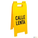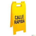 Impressão em vinil com letras pretas, em espanhol.