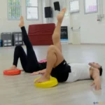 Grande disco insuflável com uma superfície rugosa para uma melhor aderência. De um lado tem uma superfície com pequenas saliências que proporcionam uma agradável sensação de massagem e do outro lado linhas circulares que proporcionam aderência ao solo durante o exercício. O Disco Sport da Gymnic destina-se a exercícios de motricidade, equilíbrio e também de recuperação funcional. A estabilidade do disco e grau de dificuldade variam de acordo com o enchimento do mesmo. Inclui caderno de exercícios.