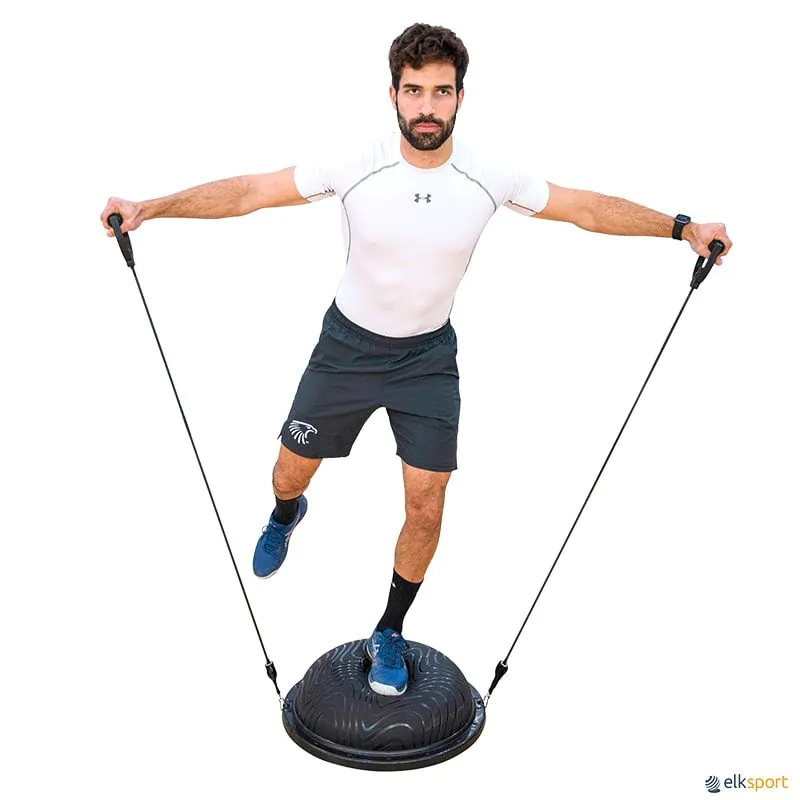 A semiesfera Pro é um instrumento ideal para realizar exercícios de propriocepção, movimentos de coordenação, para ativar e reforçar áreas musculares essenciais para a estabilidade, bem como para trabalhos de reabilitação. O revestimento superior com micro esferas confere melhor aderência. São fornecidos com dois tubos elásticos incrementando as possibilidades de treino. Os tubos podem ser desmontadas facilmente. Bomba de enchimento incluída.