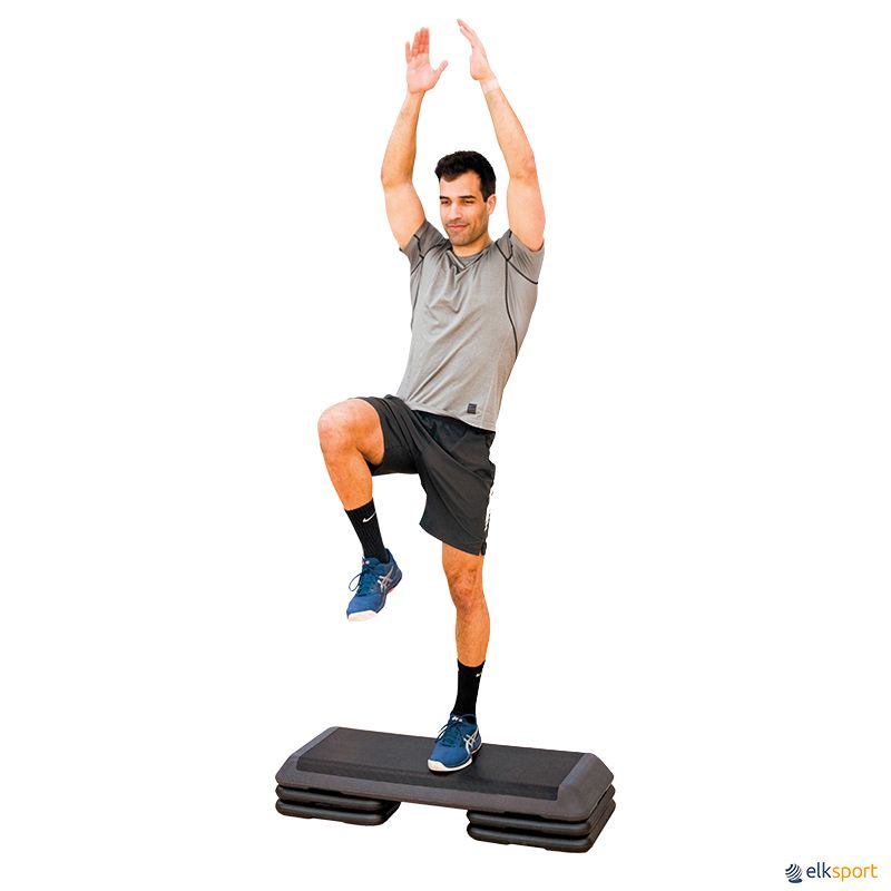 O step profissional conta com uma plataforma de grande estabilidade graças aos seus 8 apoios de borracha que evitam o deslizamento em qualquer superfície. Parte superior antiderrapante para maior segurança nos apoios. Com 4 pés laterais, opcionais, para aumentar a altura do step para 15 ou 20 cm.