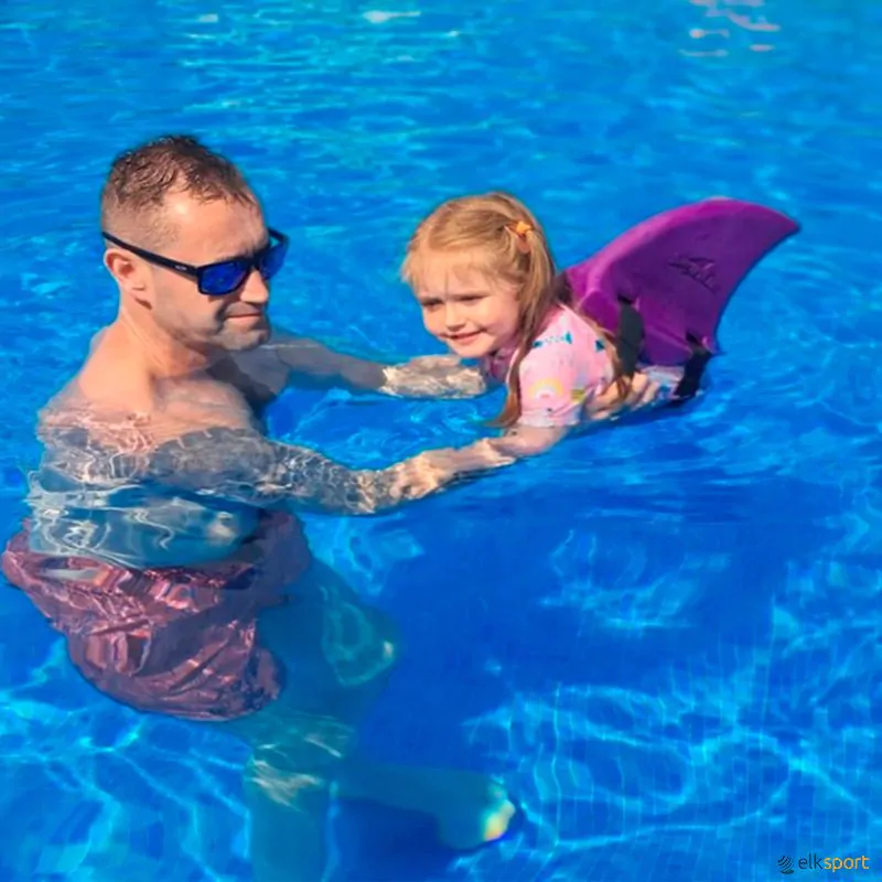 Barbatana de tubarão que se coloca nas costas, permitindo que os braços e o corpo tenham total liberdade de movimento na água.