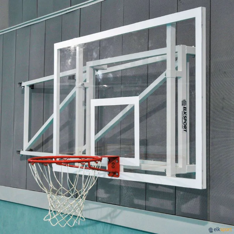 Tabela de minibasquete, para aplicação na parede, rebatível horizontalmente, com tabuleiro em fibra de 20 mm - avanço 1 m