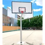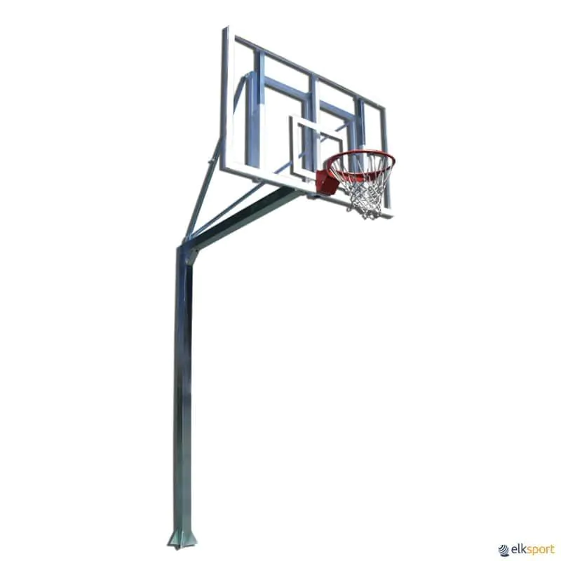 Fabricada conforme a Norma Europeia UNE-EN 1270. Tabela fixa de Basquetebol, em tubo de ferro de 10 x 10 cm com base de chapa fixada ao solo por meio de haste em rosca unida entre si para colocar em maciço de betão.