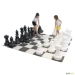Tabuleiro de xadrez gigante em nylon, lavável na máquina. Uma forma diferente e muito divertida de jogar xadrez, com olhais nas esquinas, entregue com espias de aço para espetar no solo. Não inclui peças de xadrez nem de damas.