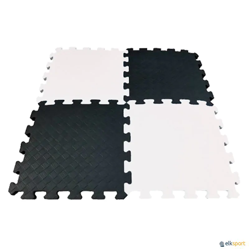 Tabuleiro de damas ou xadrez gigante composto por 64 peças de encaixar, tipo puzzle em espuma EVA, de 29 cm de lado.