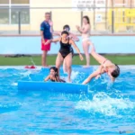 água e realizar jogos em piscinas. Também é ideal para sessões de relaxamento em contato com a água.