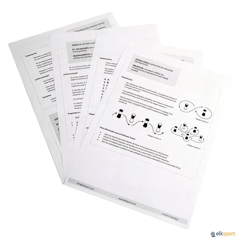 As equipas ganham pontos para cada totem com a cor da equipa voltada para cima. Vence a equipa com mais pontos ao final das diferentes rodadas. Professores e treinadores também podem usar esses totens polivalentes para outras atividades, como estafetas, sprints, exercícios de agilidade, tiro ao alvo, testes físicos, etc. Inclui fichas de atividades e diferentes formas de organização.