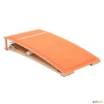 Trampolim Reuther com base anti deslizante com pés em borracha. Piso em alcatifa com marca para a zona de chamada. Debaixo da alcatifa existe uma camada de espuma de alta densidade.