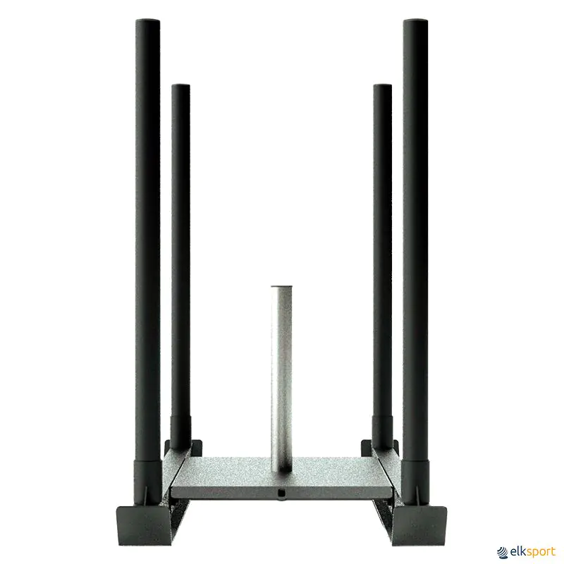 Trenó de empurrar fabricado em aço com espiga central para incrementar o peso com discos com anel interior de Ø 50 mm (discos não incluídos).