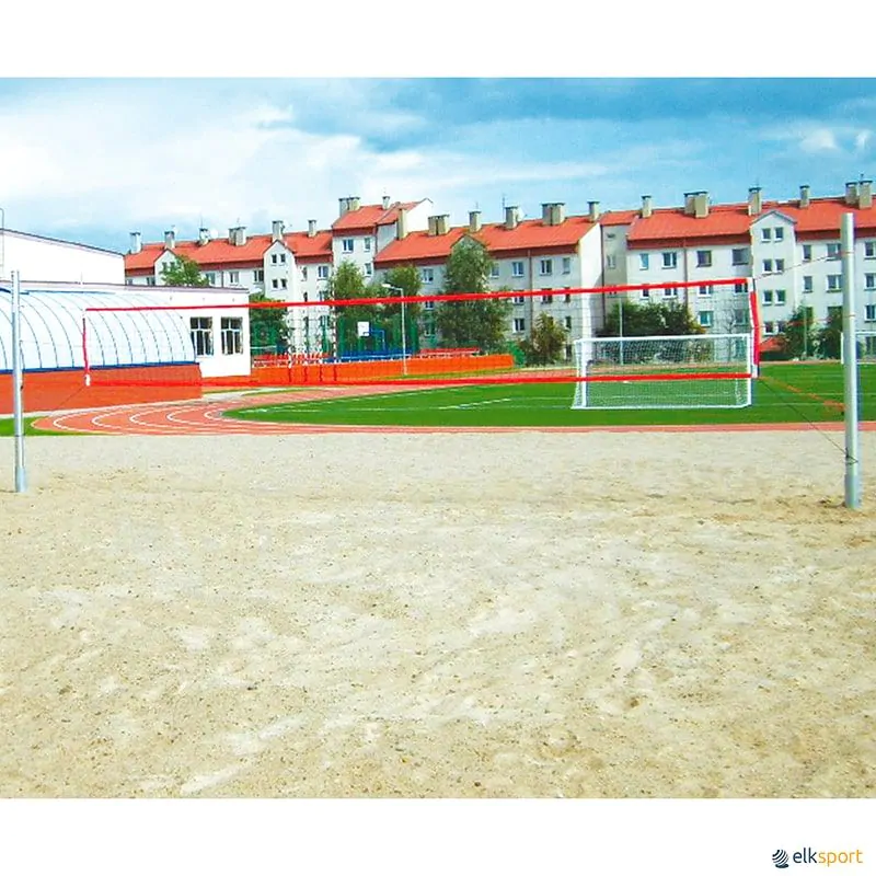 Fabricados em tubo aço ø 76 mm., galvanizado a quente. Altura regulável segundo normas de competição masculina, feminina e júnior. Entregue com sapata em T em aço galvanizado e vigas de madeira para enterrar na areia. Cumpre com norma EN1271. Não inclui a rede.