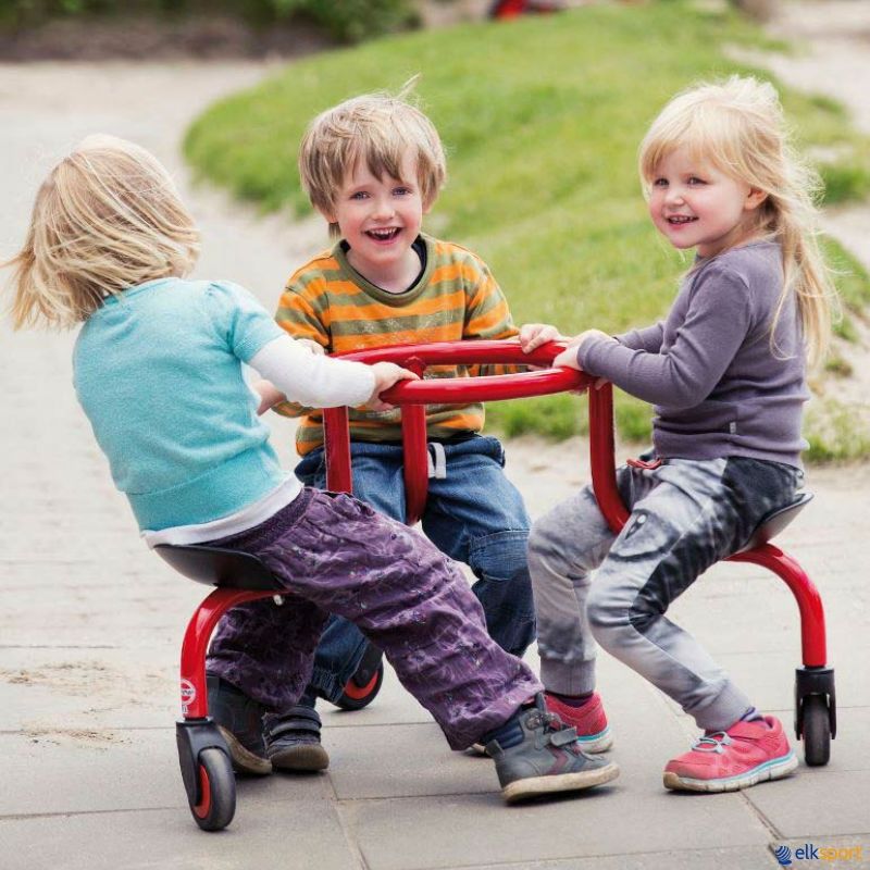 A bicicleta circular é um divertido carrossel que permite às crianças trabalhar a coordenação, uma vez que as rodas podem ir em qualquer direção, para seguir as indicações do professor ou para onde elas próprias decidirem. Oferece muitas possibilidades de jogos de caráter relacional. É fornecida totalmente montada.