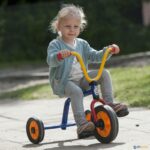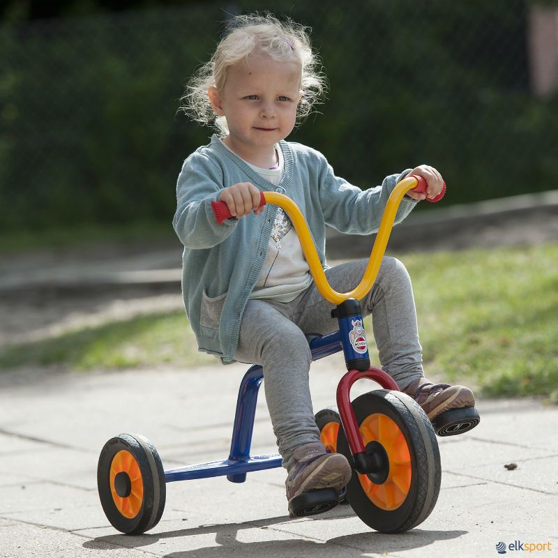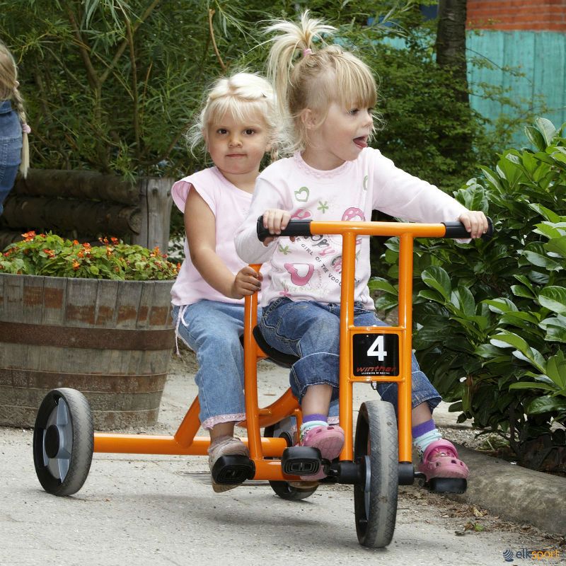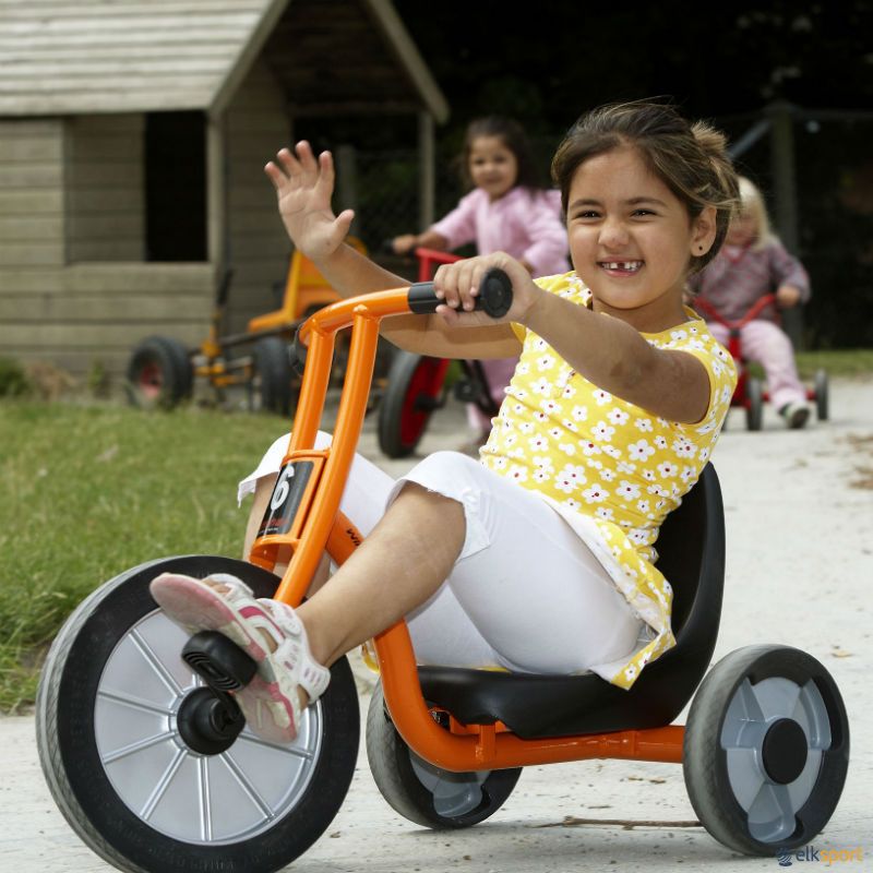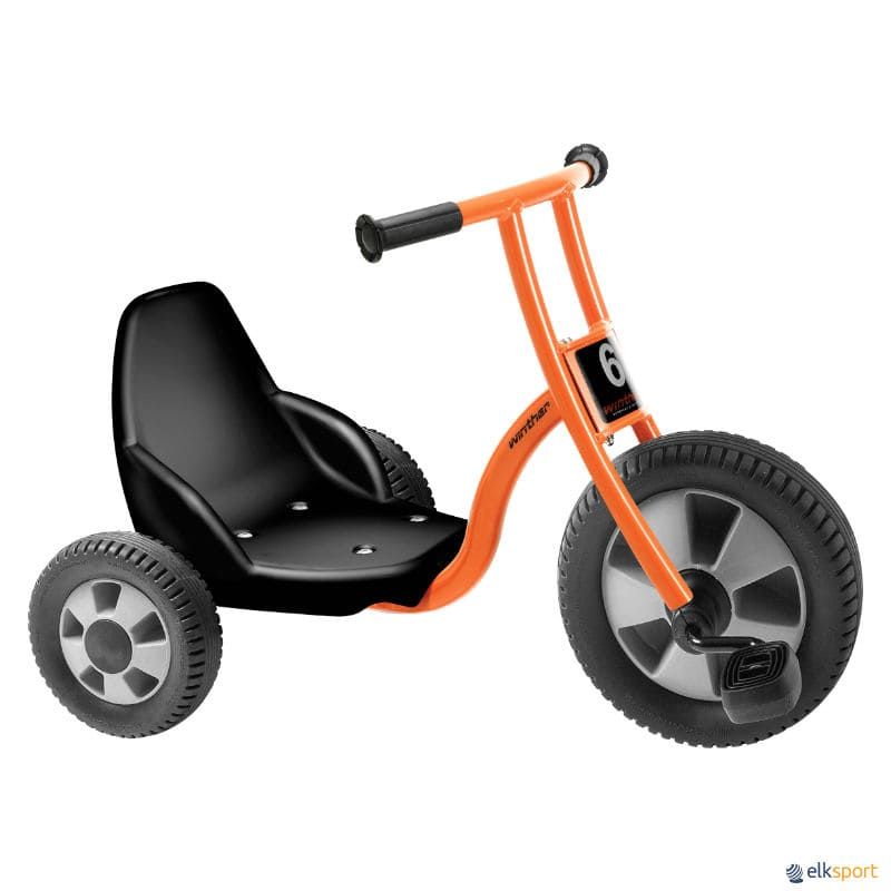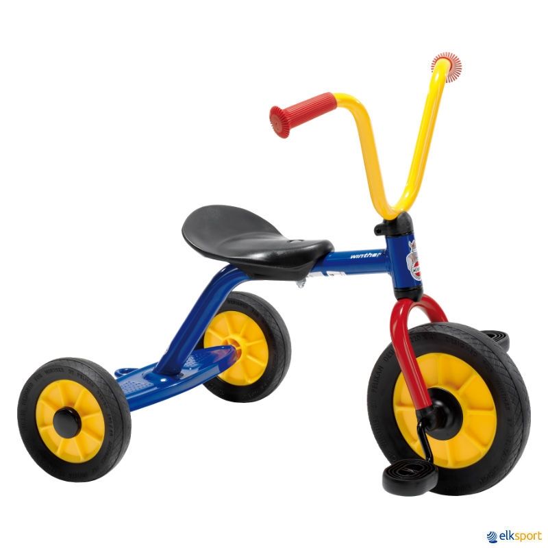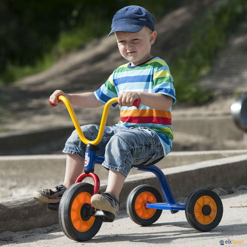 Triciclo de boa qualidade da marca Winther, com plataforma para os pés na retaguarda e assento ajustável para proporcionar às crianças grande diversão.