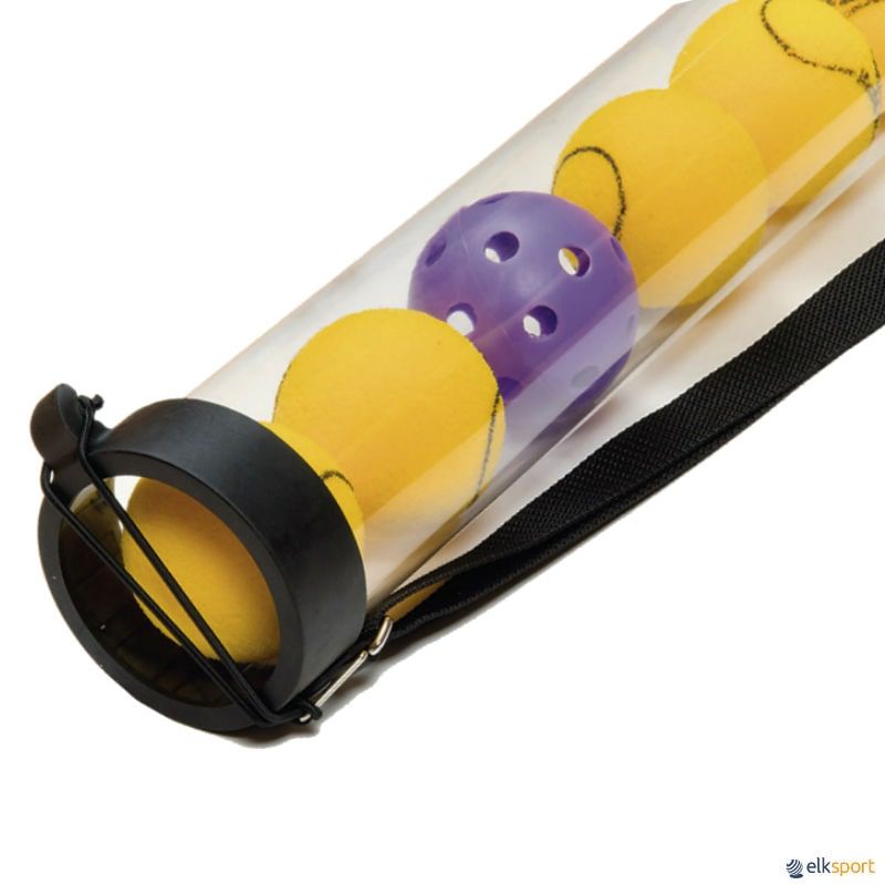 Graças à sua abertura especial autoajustável, este tubo apanhador de bolas pode ser utilizado para recolher bolas de diversos desportos (ténis, padel, floorball, etc.) ou qualquer outra bola com um diâmetro entre 6,5 e 7,5 cm. Inclui uma faixa lateral ajustável, permitindo transportá-lo ao ombro.