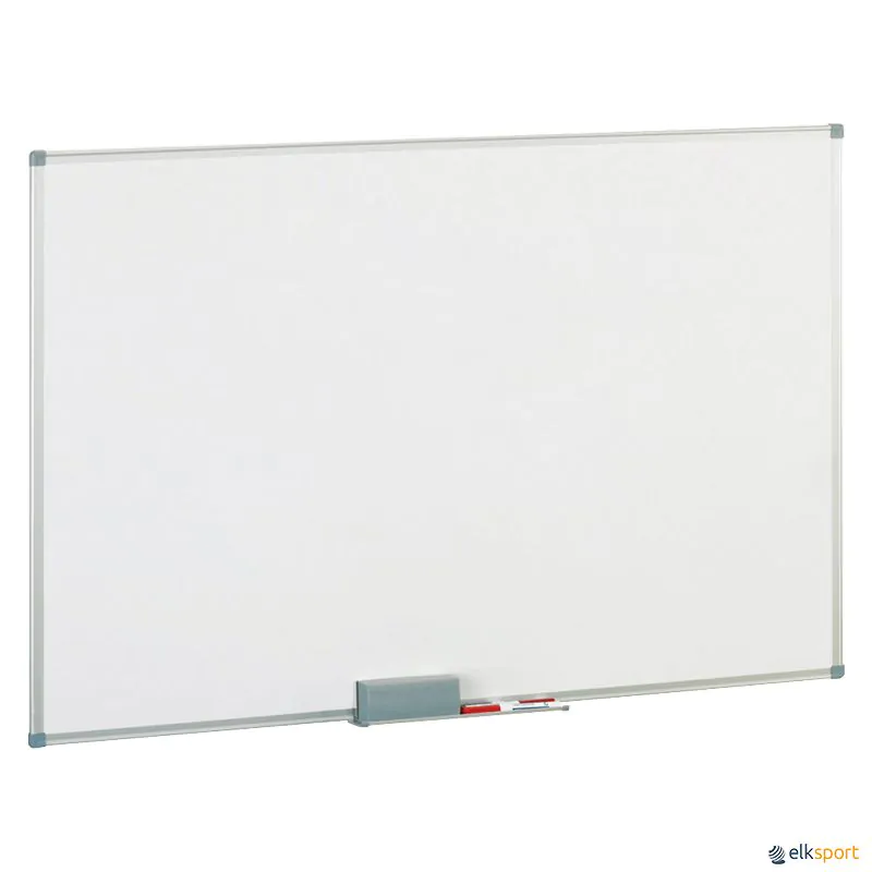 Quadro de afixação com fundo lacado branco, para escrita com canetas de feltro (não incluídas), ou trabalhos com ímanes ou figuras magnéticas. Caixilho de alumínio com cantos arredondados em plástico cinza. Com suporte de canetas de 30 cm. Pode ser colocado na horizontal ou vertical.