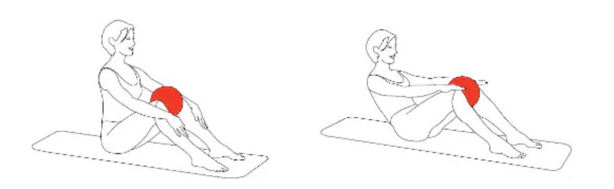 Respire na posição inicial com as mãos apoiadas na tíbia e as costas retas.