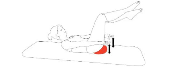 Inspire deitado, expire encontrando a posição neutra da pélvis, colocando os pés como um martelo. Expire na fase final.