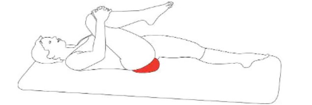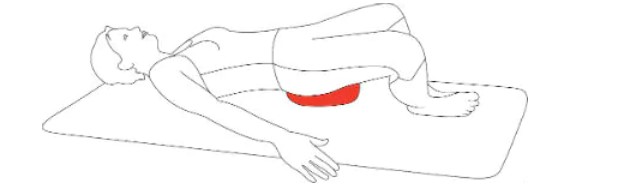 Mantendo a posição (ver figura), respire suavemente relaxando a parte inferior das costas.