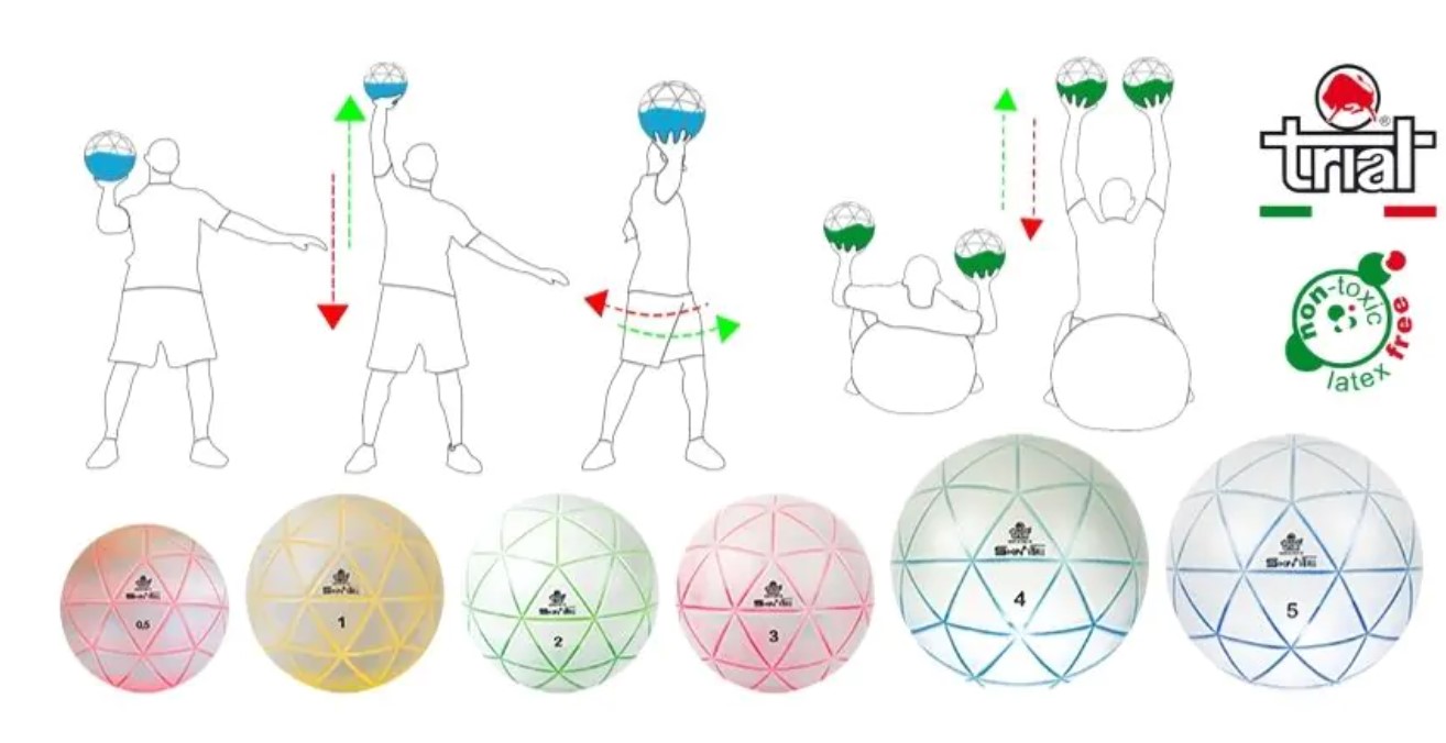 As bolas medicinais Skin Ball permitem realizar um treino dinâmico, ideal para a prevenção, o fortalecimento das extremidades inferiores e superiores, da zona do core e para aumentar a capacidade de realizar lançamentos e recepções. A seguir, apresentamos um protocolo de 21 exercícios para realizar com as suas bolas medicinais Skin Ball de Trial.