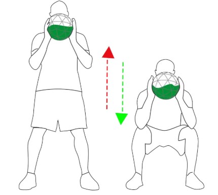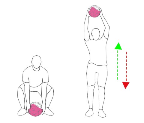Faça um agachamento (veja o exercício 11) e estique os braços para cima, mantendo a Skin Ball acima da cabeça.