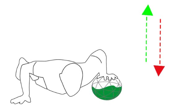 Flexão assimétrica, utilizando a Skin Ball como suporte instável. Repita o exercício do outro lado.