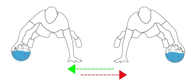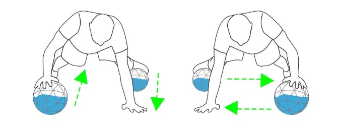 A partir da posição de prancha, utilizando 2 Skin Ball para aumentar a dificuldade do exercício, realize passes transversais utilizando o apoio no chão e o apoio nas Skin Ball, mantendo a postura correta. É necessário coordenar os passes para evitar o risco de perder o equilíbrio.